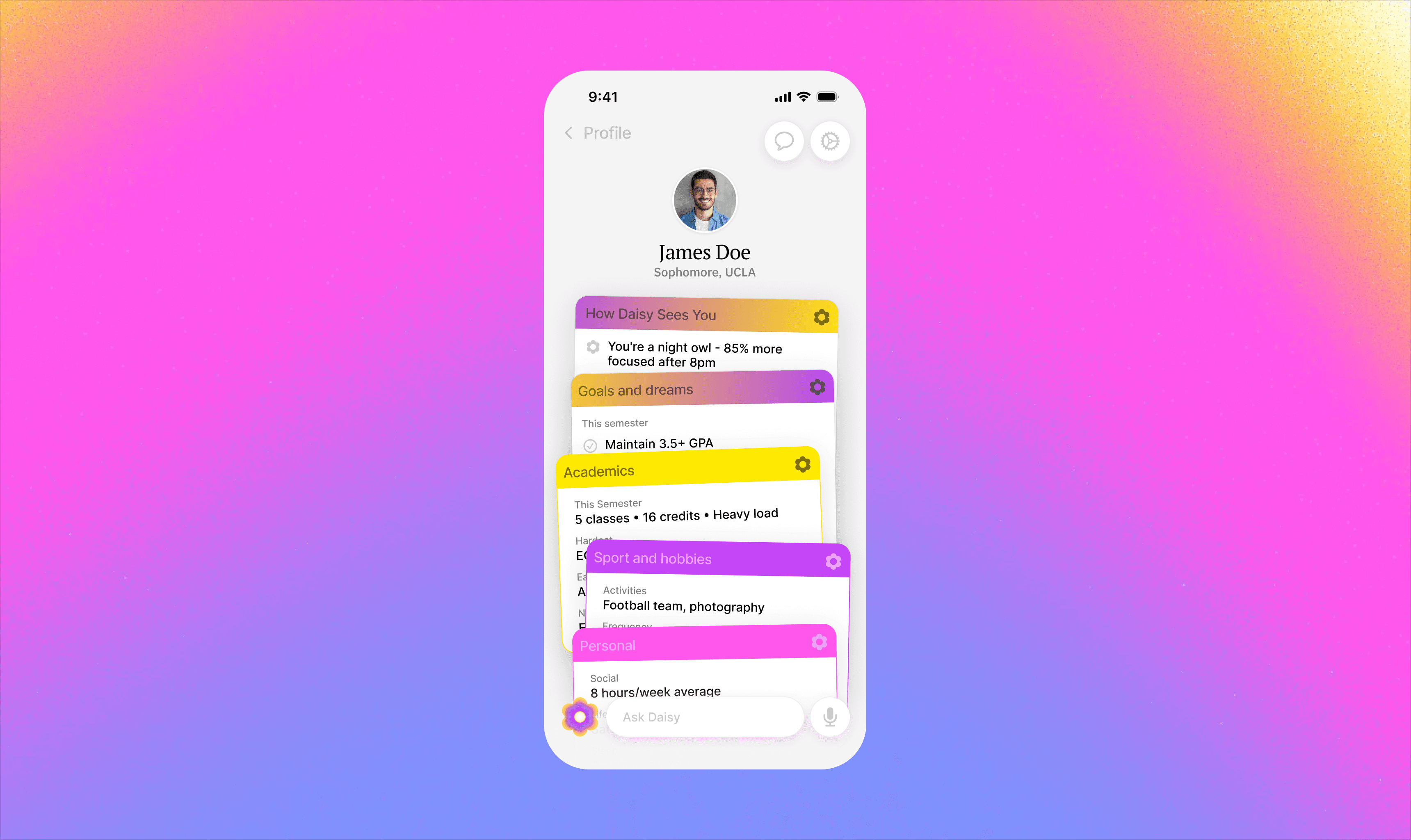 Daisy asks one question at a time, makes smart assumptions, and learns your patterns. If you usually have soccer practice for 2 hours on Thursdays, she'll remember.