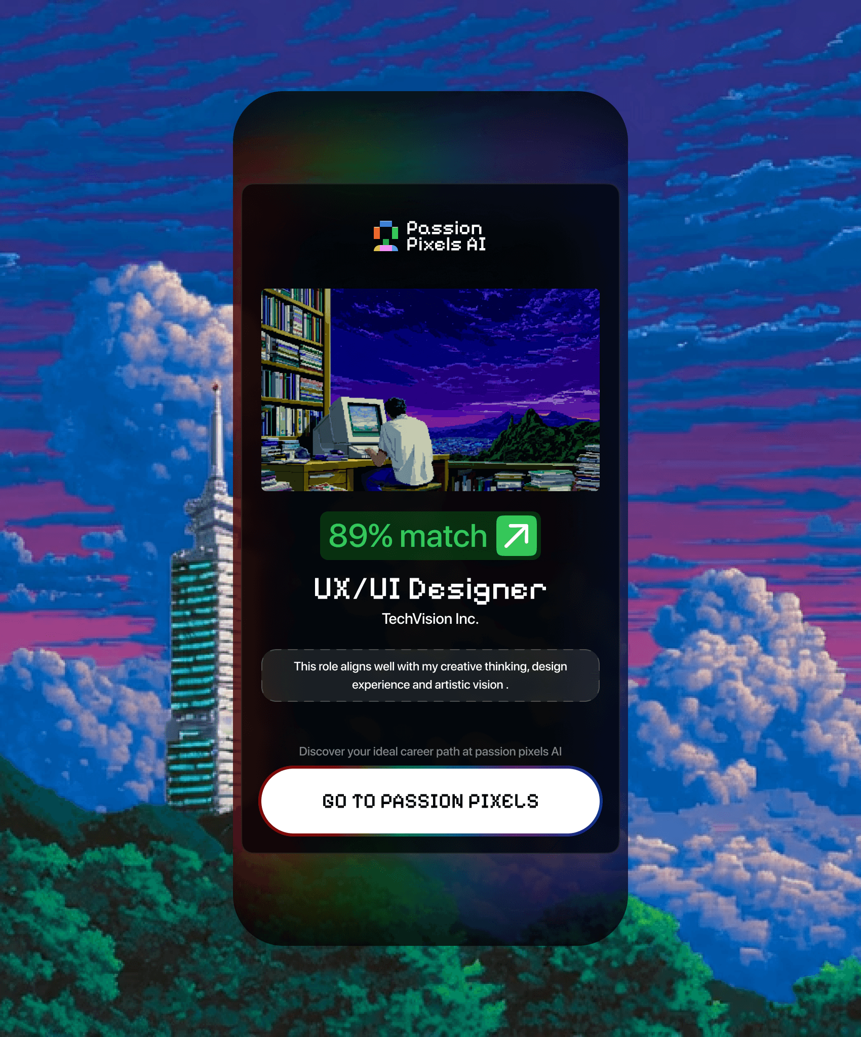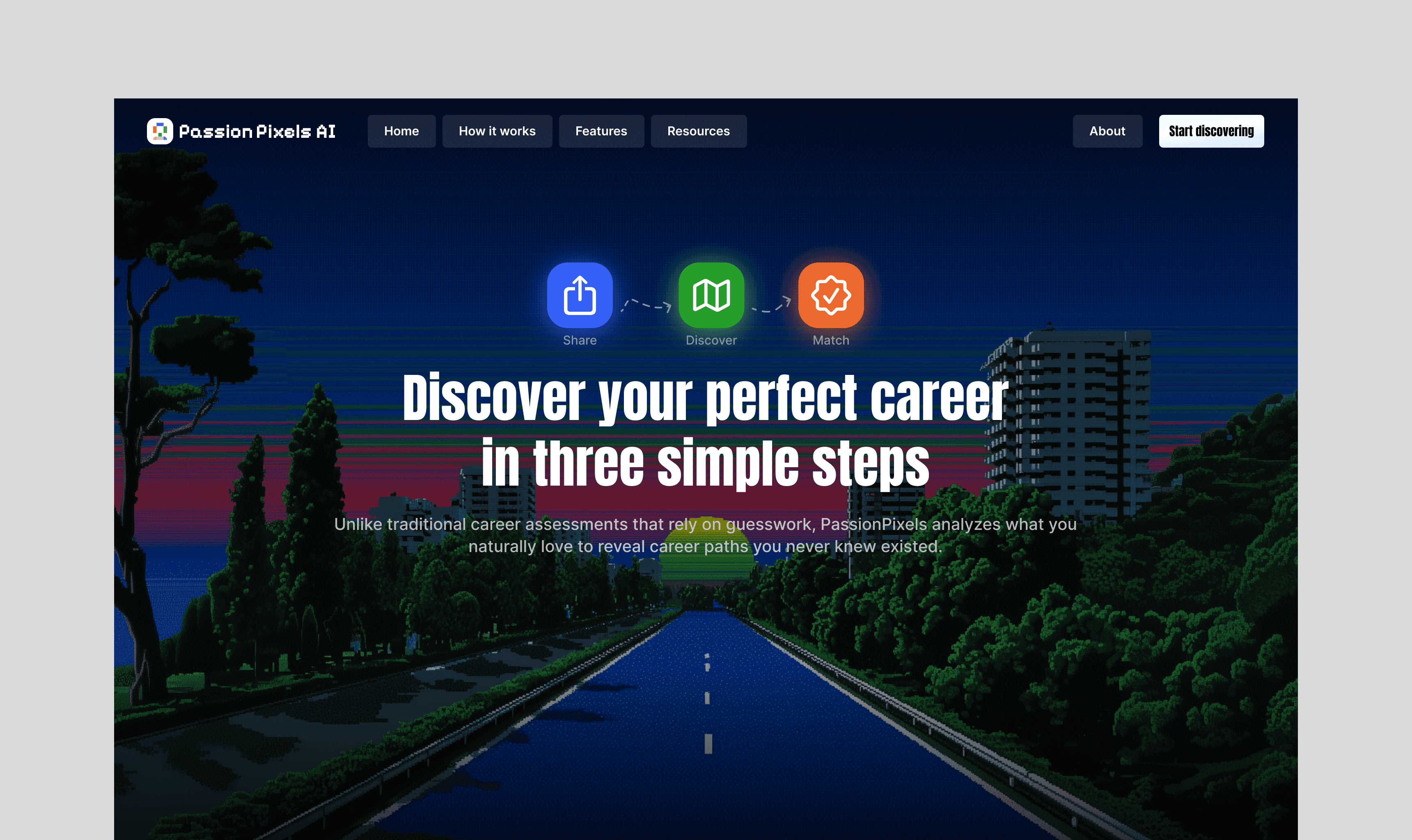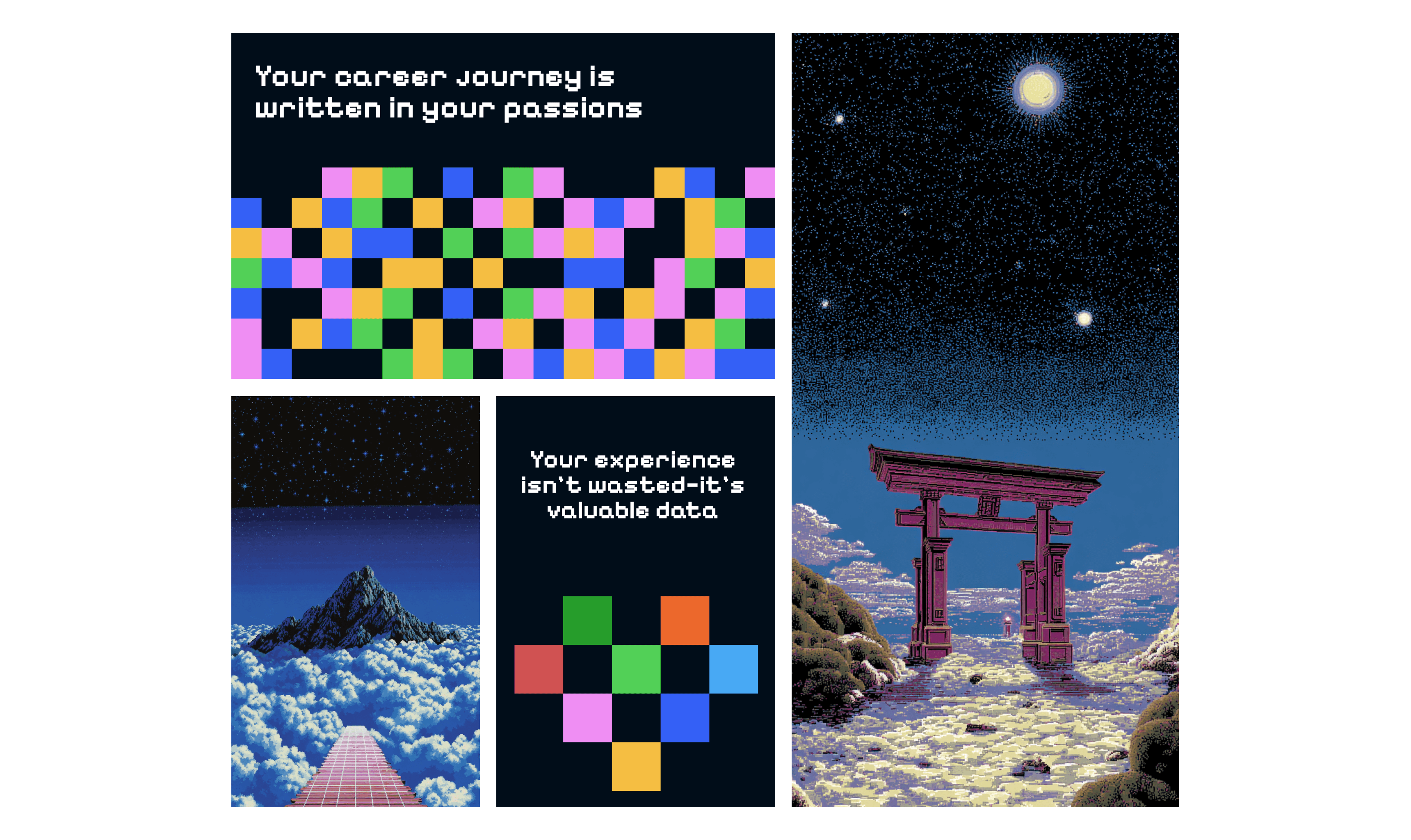Beyond just identifying careers, Passion Pixels provides a structured framework for skill development and career exploration. Users receive personalized action items, learning resources, and progress tracking tools to help them move forward on their chosen path.