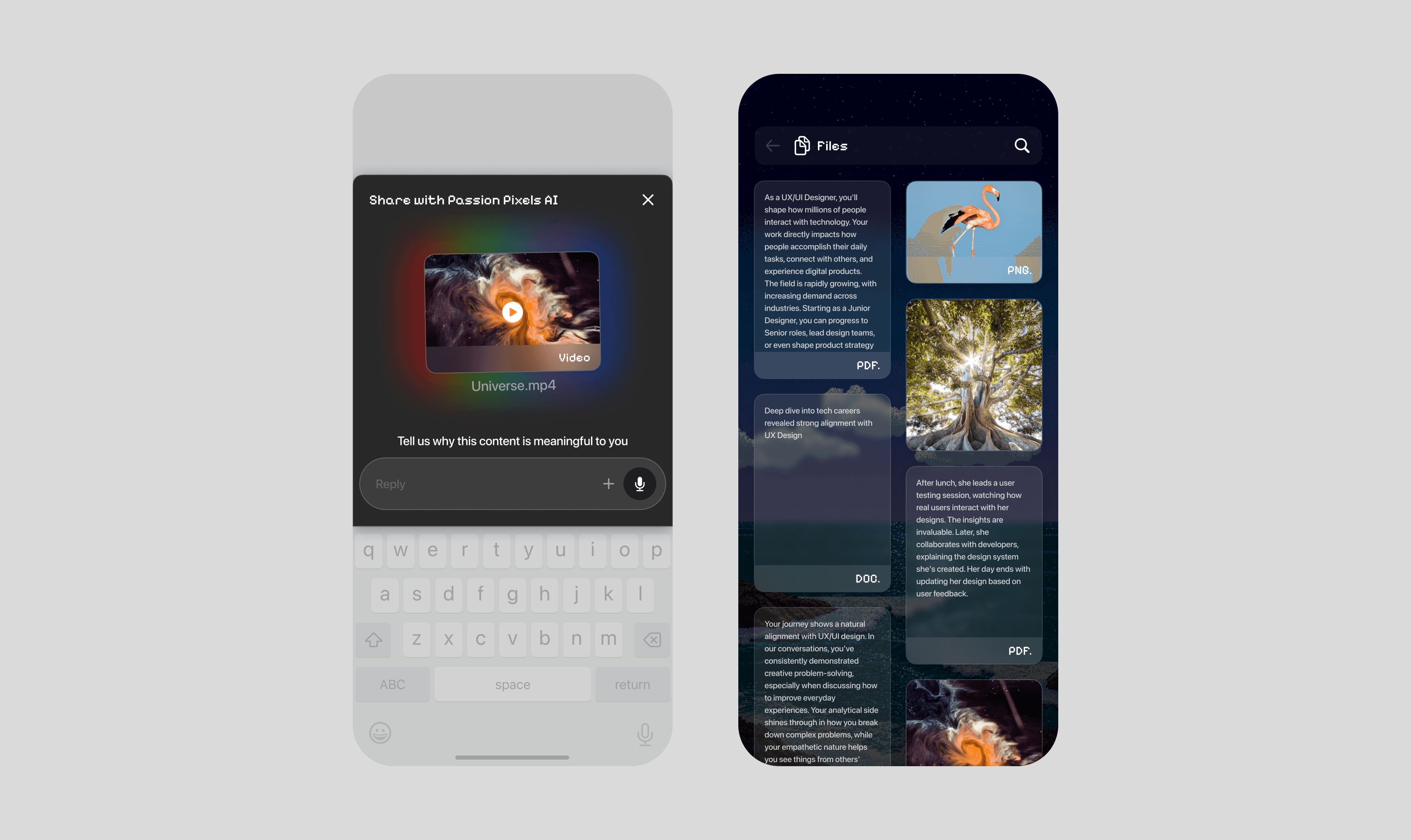 Unlike static assessments, Passion Pixels builds a living profile that evolves with each conversation. The platform uses advanced natural language processing to identify patterns in how users express themselves, gradually revealing traits, skills, and interests as they emerge naturally through dialogue.