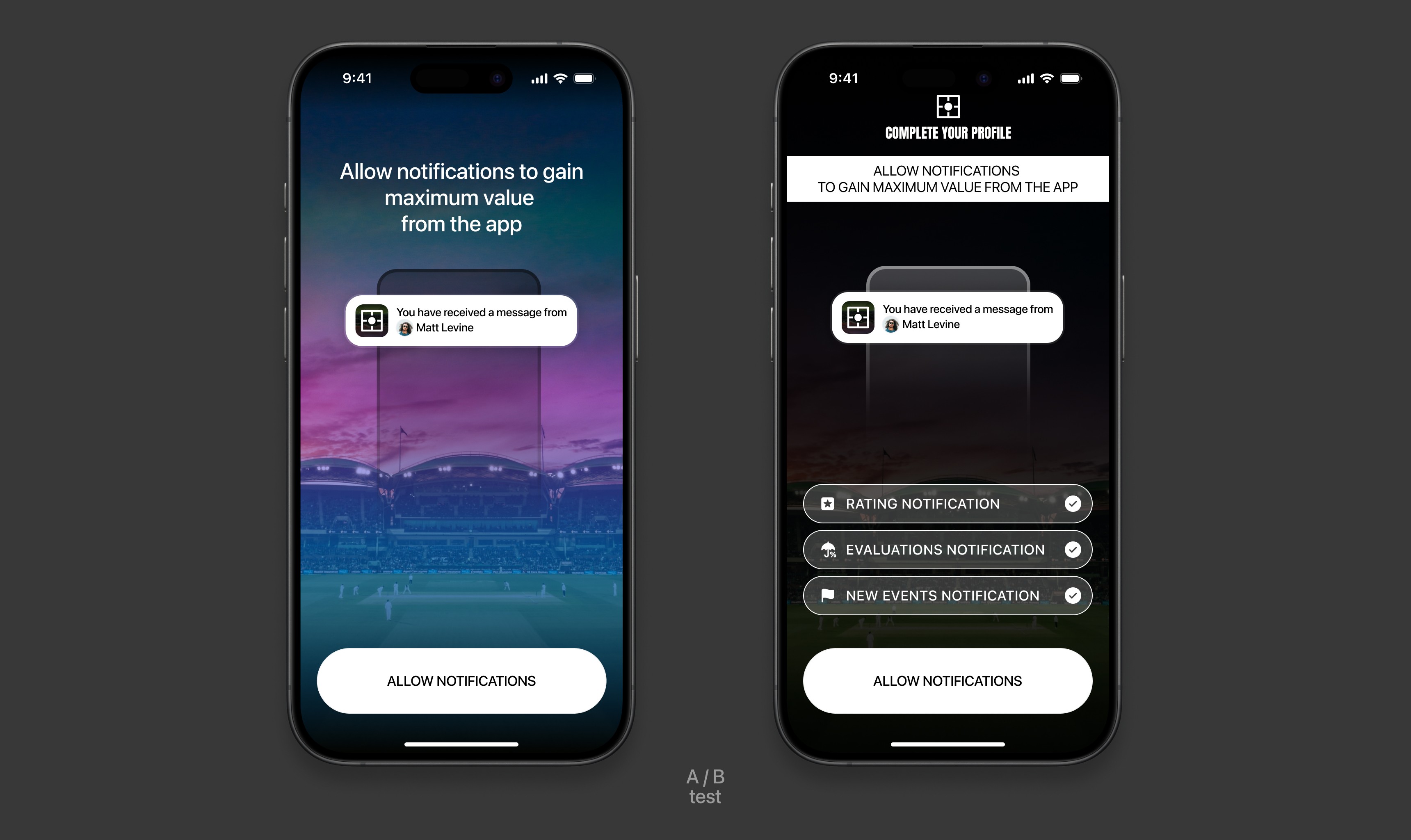 Сlean event tracking setup that connects the dots. Athletes mark events they're hitting, coaches instantly know who's showing up. The app handles all the notifications - from two weeks before to post-event follow-ups.